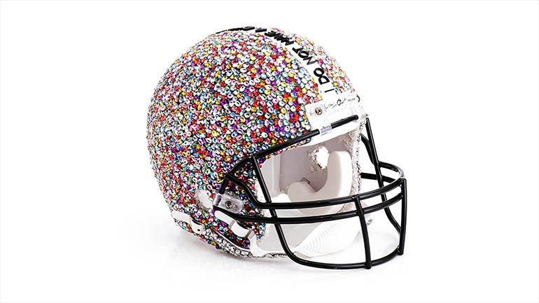 *** Helmet images were featured in Fashion Touchdown‘s 2014 collection, which included “48 haute couture football helmets designed by fashion designers and brands.” The helmets were auctioned in conjunction with the Super Bowl XLVIII to benefit the National Football Foundation. Read more ***
