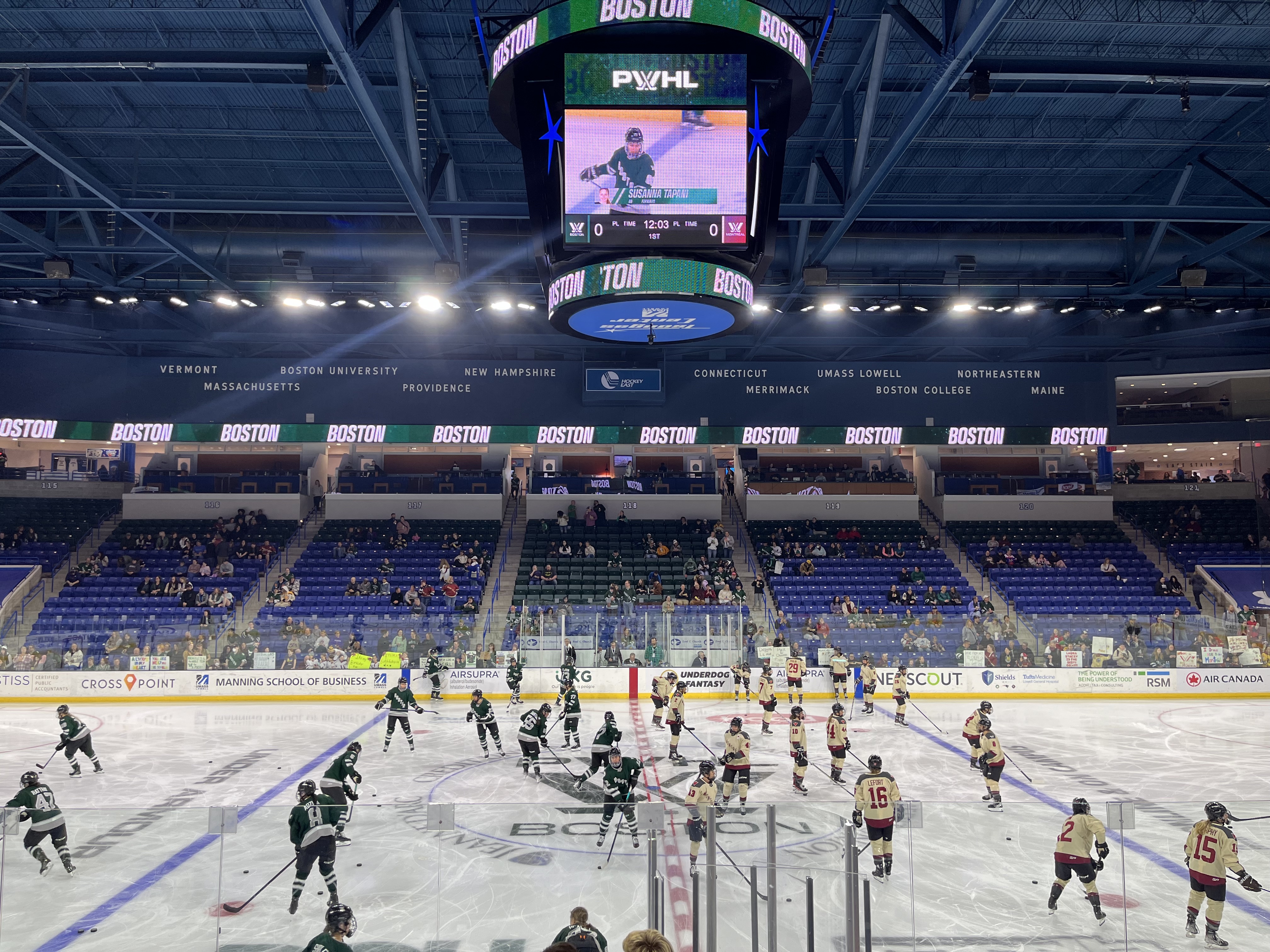 With just 1:20 remaining in the third period at the Tsongas Center, PWHL Boston has a chance to break the 3-3 tie and clinch their spot in the playoffs with a win over PWHL Montreal. Going into the third, Boston was up 3-0, with goals from the captain, Hilary Knight, the third draft pick overall, Alina Müller, and associate captain, Megan Keller. Montreal nearly overcame Boston with three unanswered goals in the third with two from Mikyla Grant-Mentis on the power-play and one from Montreal’s captain, Marie-Philip Poulin.